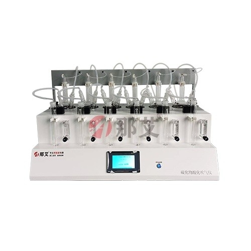 智能硫化物酸化吹氣儀(NAI-LHW-6Z)是一款根據國家標準量身定做的一款專門用于檢測水中硫化物的前處理儀器。該儀器采用垂直加酸、氮氣吹脫、酸化吸收等一體化設